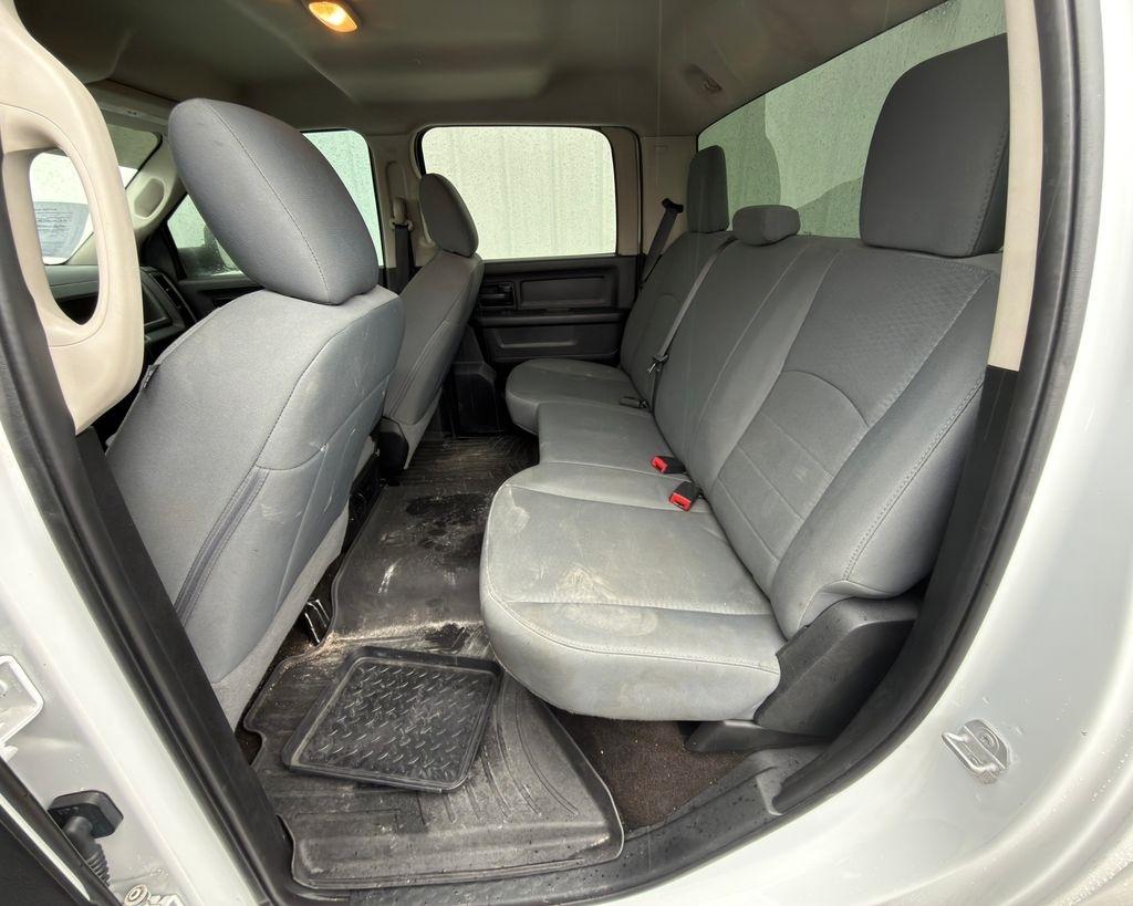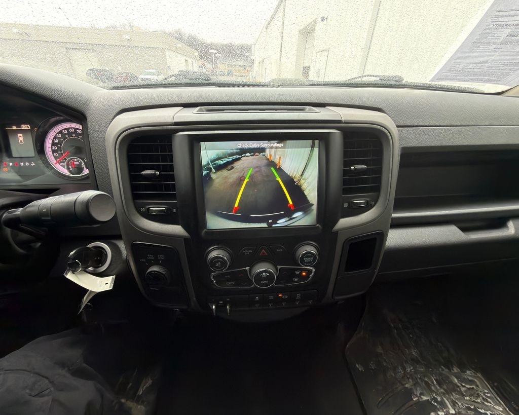 1-Yr SiriusXM Radio Service, 17" x 7.5" Steel Styled Wheels, 220 Amp Alternator, 4-Wheel Disc Brakes, 40/20/40 Split Bench Seat, 6 Speakers, ABS brakes, Air Conditioning, AM/FM radio, Anti-Spin Differential Rear Axle, Auto-dimming Rear-View mirror, Black Exterior Mirrors, Brake assist, Bright Front Bumper, Bright Grille, Bright Rear Bumper, Carpet Floor Covering, Center Hub, Chrome Appearance Group, Clearance Lamps, Delay-off headlights, Driver door bin, Dual front impact airbags, Dual front side impact airbags, Electric Shift-On-The-Fly Transfer Case, Electronic Stability Control, Electronically Controlled Throttle, Exterior Mirrors Courtesy Lamps, Exterior Mirrors w/Heating Element, Exterior Mirrors w/Supplemental Signals, For More Info, Call 800-643-2112, Front & Rear Floor Mats, Front & Rear Rubber Floor Mats, Front anti-roll bar, Front Center Armrest, Fully automatic headlights, Heated door mirrors, Heavy Duty Vinyl 40/20/40 Split Bench Seat, Hemi Badge, I/P Mounted Auxiliary Switches, Locking Tailgate, Low tire pressure warning, Manual Adjust Seats, Manufacturer's Statement of Origin, Media Hub (USB, AUX), Next Generation Engine Controller, Occupant sensing airbag, Overhead airbag, ParkSense Rear Park Assist System, ParkView Rear Back-Up Camera, Passenger door bin, Popular Equipment Group, Power Black Trailer Tow Mirrors, Power door mirrors, Power steering, Power windows, Protection Group, Quick Order Package 2FA Tradesman, Radio data system, Radio: 3.0, Rear Folding Seat, Rear step bumper, Remote Keyless Entry, SiriusXM Satellite Radio, Snow Chief Group, Speed control, Storage Tray, Tachometer, Tilt steering wheel, Tip Start, Traction control, Trailer Brake Control, Trailer Tow Mirrors, Variably intermittent wipers, Vendor Painted Cargo Box Tracking, Voltmeter, Wheel to Wheel Side Steps, Wheels: 18" x 8.0" Steel Chrome Clad.